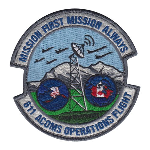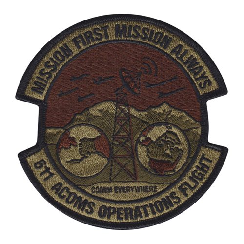 Custom patches for the611th Air Communications Squadron at MacDill Air Force Base, Florida. Our 611 ACOMS patches are 100% embroidered with Velcro backing.