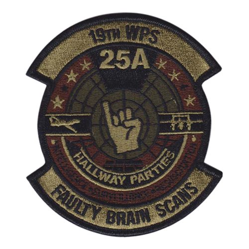 Custom patches for the 19th Weapons Squadron at Nellis Air Force Base, Nevada. Our 19 WPS patches are 100% embroidered with Velcro backing.