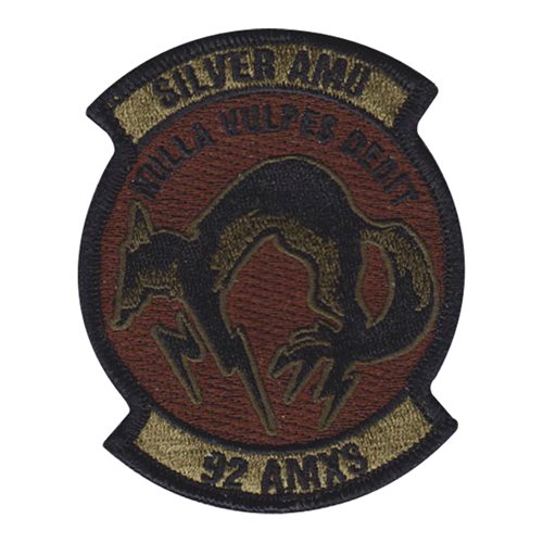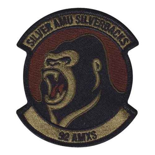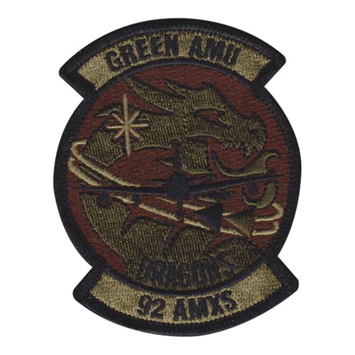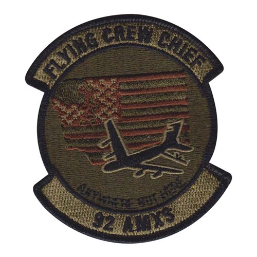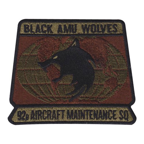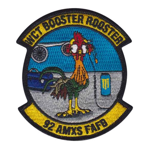 Custom patches for 92nd Aircraft Maintenance Squadron at Fairchild Air Force Base, Washington. Our 92 AMXS patches are 100% embroidered with Velcro backing.