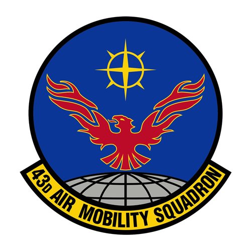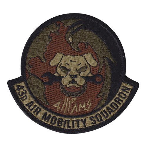 Custom patches for the 43d Air Mobility Squadron at Pope Field, North Carolina. Our 43 AMS patches are 100% embroidered with Velcro backing.
