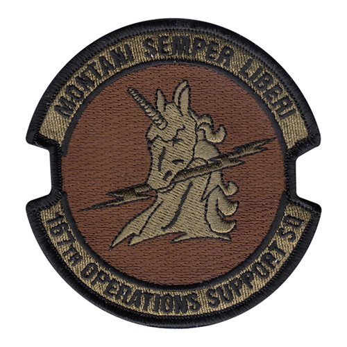 Custom patches for the 167th Operations Support Squadron at West Virginia. Our 167 OSS patches are 100% embroidered with Velcro backing.
