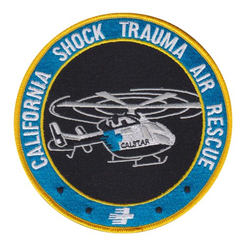 Custom patches for California Shock Trauma Air Rescue. Our CALSTAR patches are 100% embroidered with Velcro backing.