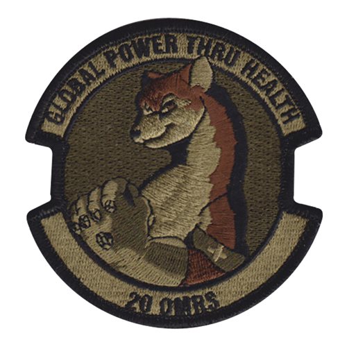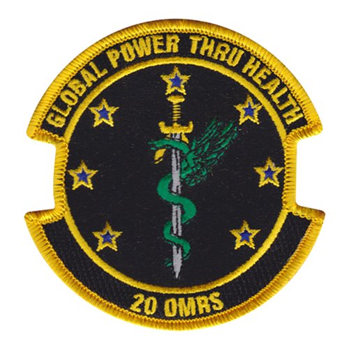 Custom patches for the 20th Operational Medical Readiness Squadron at Shaw Air Force Base, South Carolina. Our 20 OMRS patches are 100% embroidered with Velcro backing.