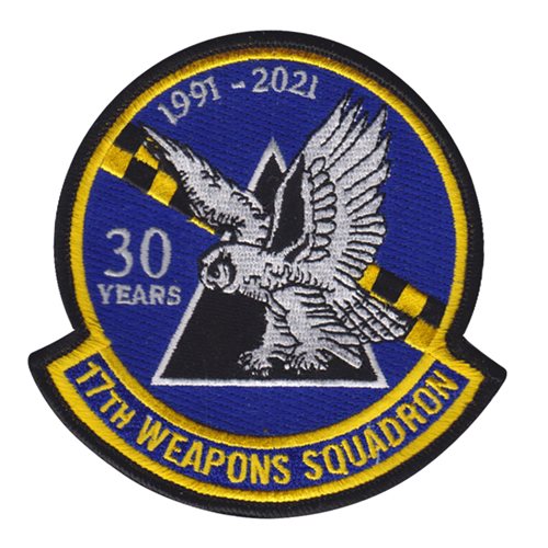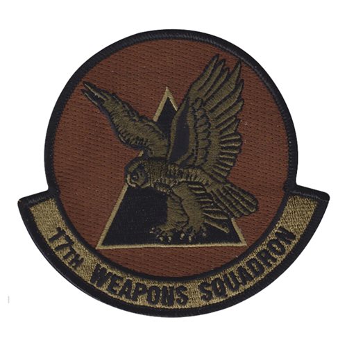 Custom patches for the 17th Weapons Squadron at Nellis Air Force Base, Nevada. Our 17 WPS patches are 100% embroidered with Velcro backing.