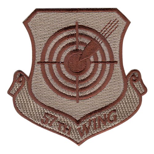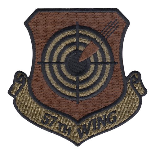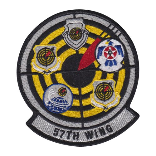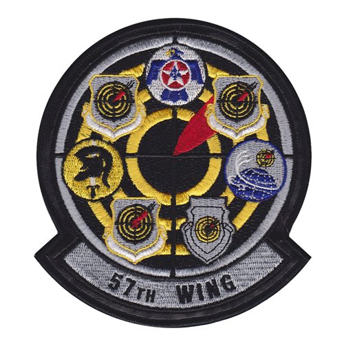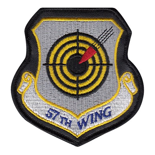 Custom patches for 57th Wing at Nellis Air Force Base, Nevada. Our 57 WG patches are 100% embroidered with Velcro backing.