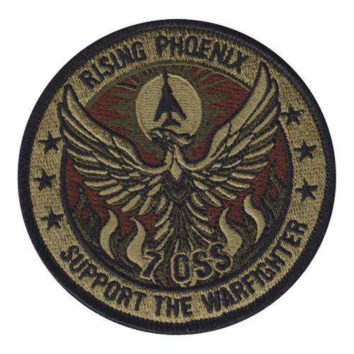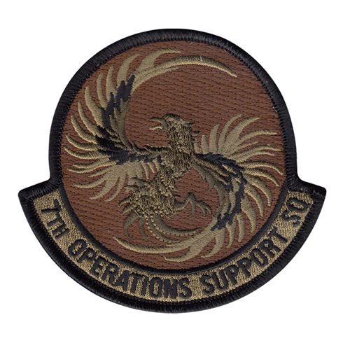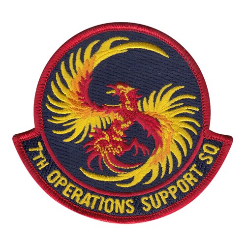 Custom patches for the 7th Operations Support Squadron at Dyess Air Force Base in Abilene, Texas. Our 7 OSS patches are 100% embroidered with Velcro backing.