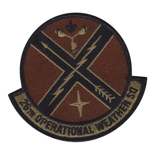 Custom patches for 26th Operational Weather Squadron at Barksdale Air Force Base, Louisiana. Our 26 OWS patches are 100% embroidered with Velcro backing.