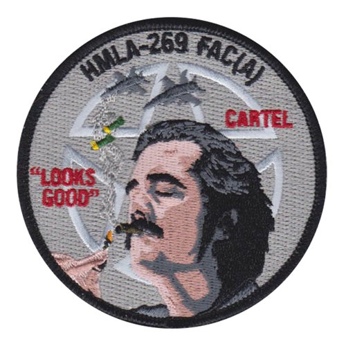 Custom patches for the Marine Light Attack Helicopter Squadron 269 at Marine Corps Air Station New River, North Carolina. Our HMLA-269 patches are 100% embroidered with Velcro backing.