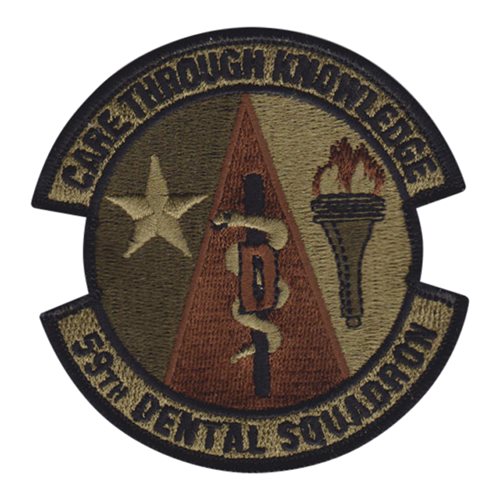 Custom patches for the  59th Dental Squadron Madam Butterfly OCP at Operating Site Lackland Air Force Base, Texas. Our 59 DS patches are 100% embroidered with Velcro backing.
