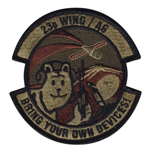 Custom patches for the 23rd Wing at Moody Air Force Base, Georgia. Our 23 WG patches are 100% embroidered with Velcro backing.