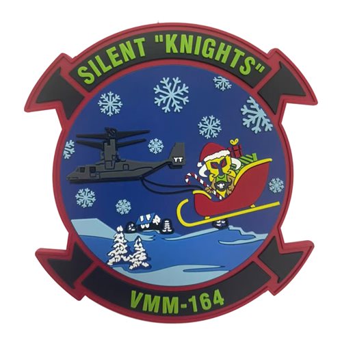 Custom patches for the Marine Medium Tiltrotor Squadron 164th at Marine Corps Air Station Miramar, California. Our VMM-164 patches are 100% embroidered with Velcro backing.