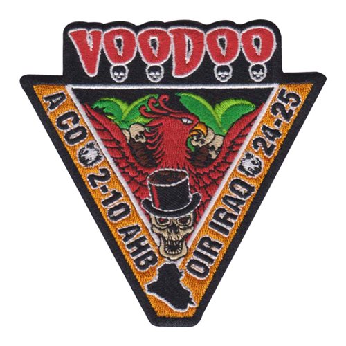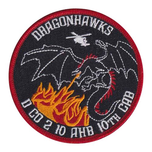Custom patches for the 2-10th Assault Helicopter Battalion. Our 2-10 AHB patches are 100% embroidered with Velcro backing.