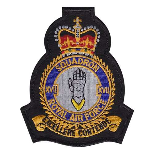 Custom patches for 17th Squadron Royal Aircraft Factory at Edwards Air Force Base, California. Our 17 SQN RAF patches are 100% embroidered with Velcro backing.
