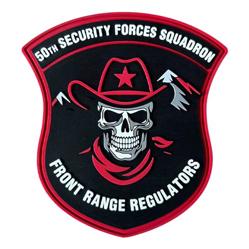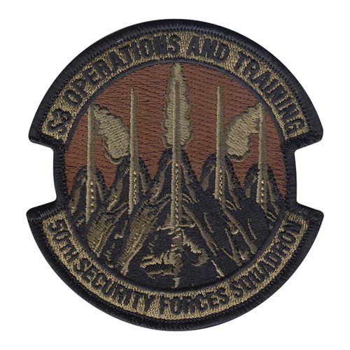 Custom patches for the 50th Security Forces Squadron at at Schriever Air Force Base, Colorado. Our 50 SFS patches are 100% embroidered with Velcro backing.