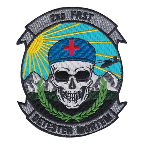 Custom patches for the 2nd Forward Surgical Team at Fort Carson, Colorado. Our 2 FRST patches are 100% embroidered with Velcro backing.