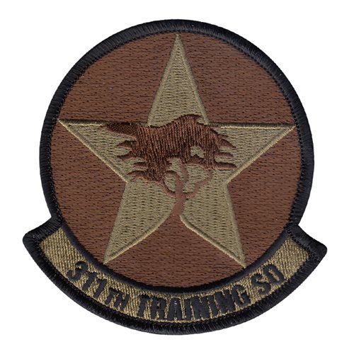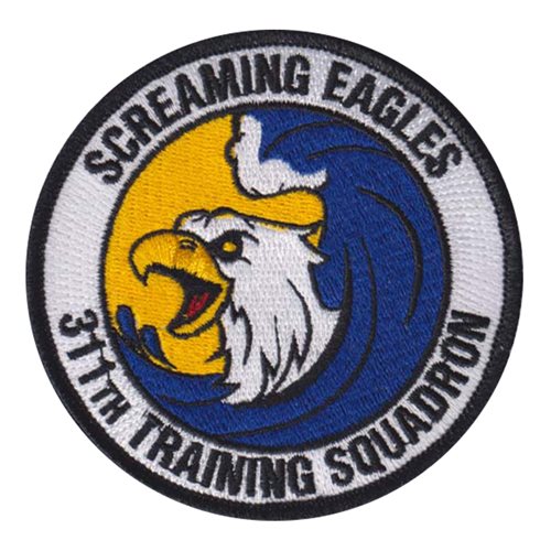 Custom patches for 311th Training Squadron at Goodfellow Air Force Base, Texas. Our 311 TRS patches are 100% embroidered with Velcro backing.