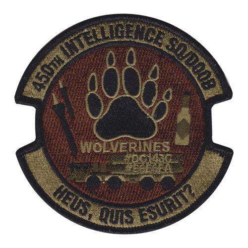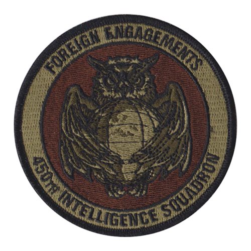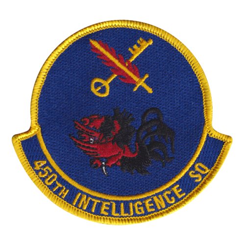 Custom patches for the 450th Intelligence Squadron at Ramstein Air Base, Germany. Our 450 IS patches are 100% embroidered with Velcro backing.