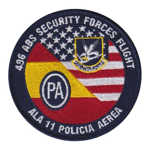 Custom patches for the 496th Air Base Squadron at Ramstein Air Base, Germany. Our 496 ABS patches are 100% embroidered with Velcro backing.