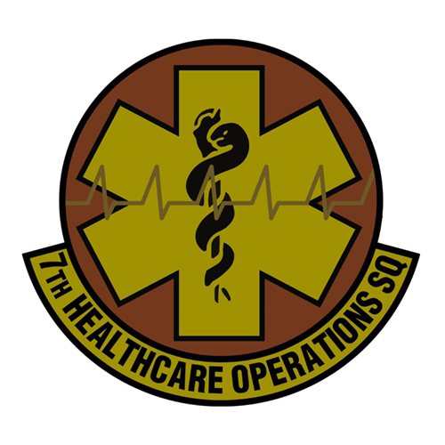 Custom patches for the 7th Health Care Operations Squadron at Dyess Air Force Base in Abilene, Texas. Our 7 HCOS patches are 100% embroidered with Velcro backing.