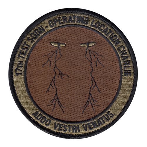 Custom patches for the 17th Test Squadron at at Schriever Air Force Base, Colorado. Our 17 TS patches are 100% embroidered with Velcro backing.