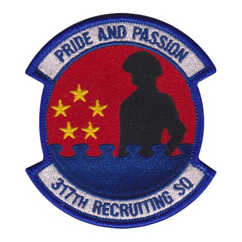 Custom patches for the United States Air Force Recruiting Squadrons. Our USAF Recruiting Squadron patches are 100% embroidered with Velcro backing.