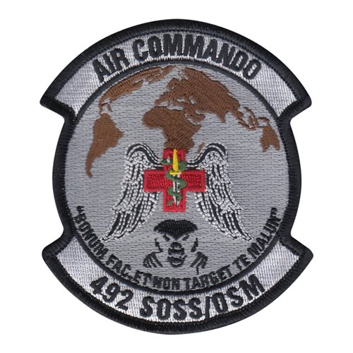 Custom patches 492nd Special Operations Support Squadron for at Duke Field, Florida. Our 492 SOSS patches are 100% embroidered with Velcro backing.
