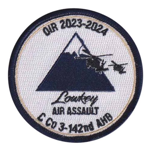 Custom patches for the 3-142nd Assault Helicopter Battalion. Our 3-142 AHB patches are 100% embroidered with Velcro backing.