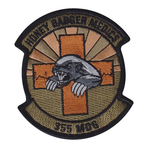 Custom patches for the 355th Medical Group at Davis-Monthan Air Force Base, Tucson, Arizona. Our 355 MDG patches are 100% embroidered with Velcro backing.