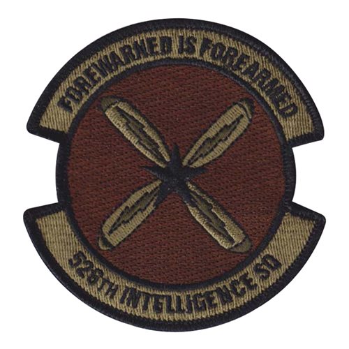 Custom patches for the 526th Intelligence Squadron at Operating Site Alpha, Nellis Air Force Base, Nevada. Our 526 IS patches are 100% embroidered with Velcro backing.