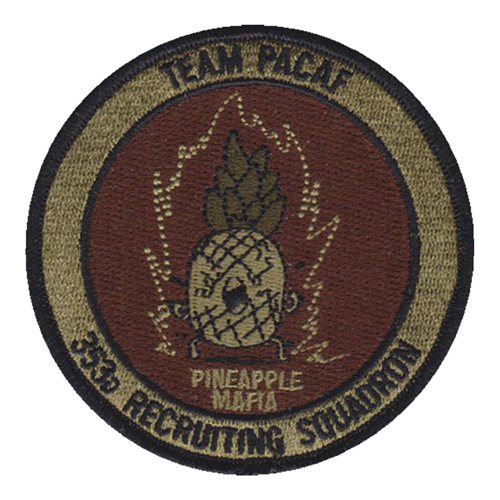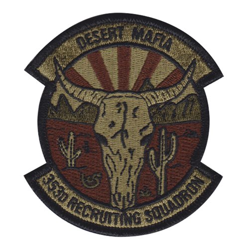 Custom patches for 353rd Recruiting Squadron at March Air Reserve Base, California. Our 353 RCS patches are 100% embroidered with Velcro backing.