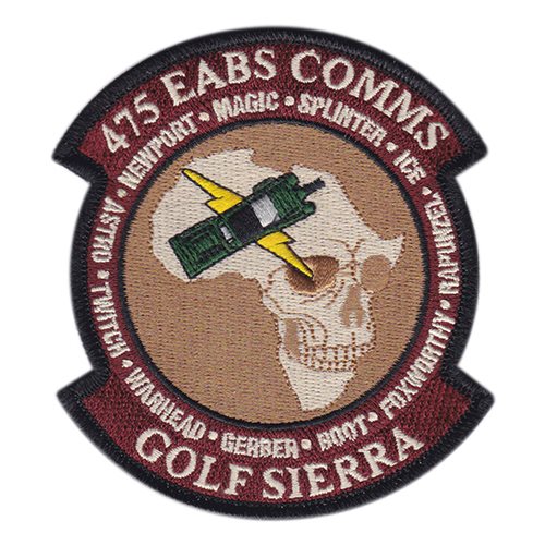Custom patches for the 475th Expeditionary Air Base Squadron at Yokota Air Base, Japan. Our 375 EABS patches are 100% embroidered with Velcro backing.