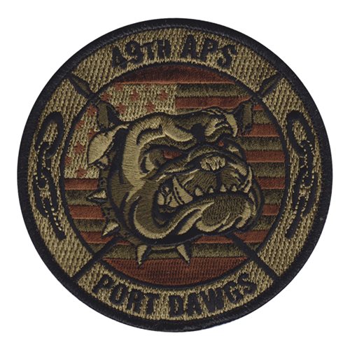 Custom patches for the 49th Aerial Port Squadron at Grissom Air Force Base, Indiana. Our 49 APS patches are 100% embroidered with Velcro backing.