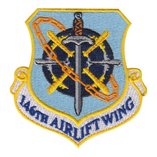 Custom patches for the 146th Airlift Wing of the California Air National Guard. Your 146 AW CA ANG patches are 100% embroidered with Velcro backing.