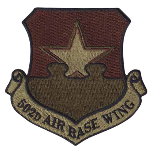 Custom patches for 502nd Air Base Wing at Joint Base San Antonio-Randolph, Texas. Our 502 ABW patches are 100% embroidered with Velcro backing.