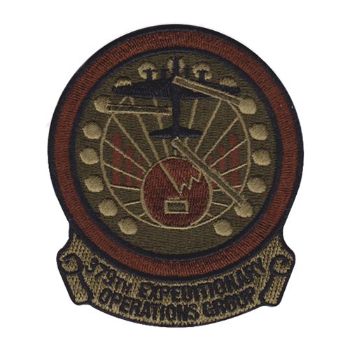 Custom patches for the 379th Expeditionary Operations Group. Our 379 EOG patches are 100% embroidered with Velcro backing.