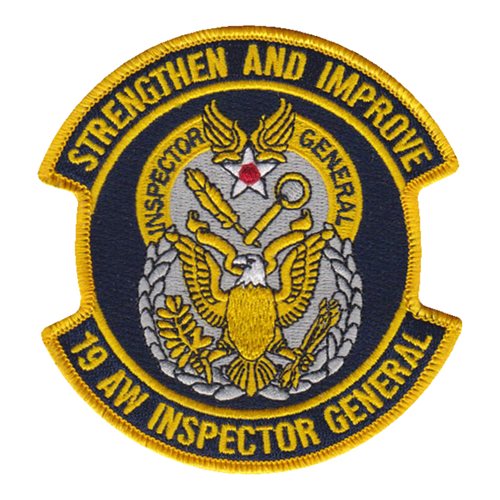 Custom patches for the 19th Airlift Wing at Little Rock Air Force Base, Arkansas. Our 19 AW patches are 100% embroidered with Velcro backing.