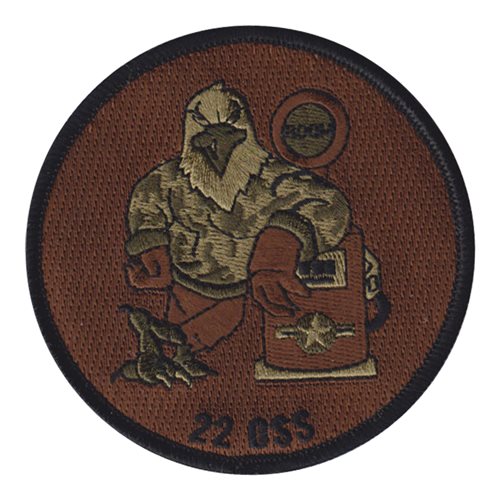 Custom patches for the 22nd Operations Support Squadron at McConnell Air Force Base. Our 22 OSS patches are 100% embroidered with Velcro backing.
