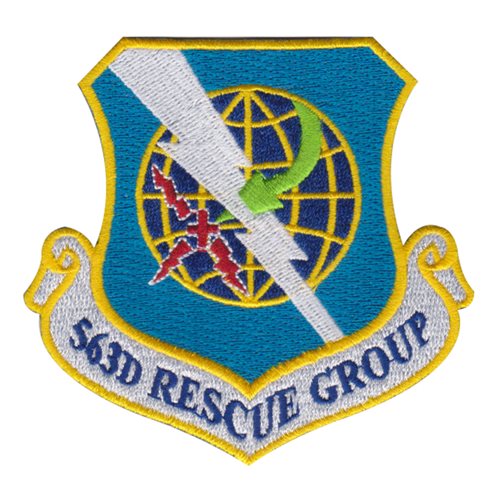 Custom patches for the 563rd Rescue Group at Davis-Monthan Air Force Base, Tucson, Arizona. Our 563 RQG patches are 100% embroidered with Velcro backing.