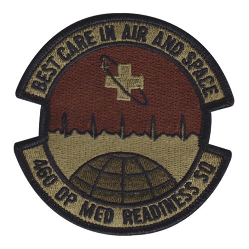Custom patches for the 460th Operational Medical Readiness Squadron at Space Base Delta 2, Colorado. Our 460 OMRS patches are 100% embroidered with Velcro backing.