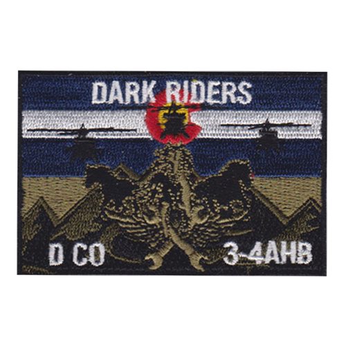 Custom patches for the 3rd Assault Helicopter Battalion, 4th Aviation Regiment at Fort Carson, Colorado. Our 3-4 AHB patches are 100% embroidered with Velcro backing.
