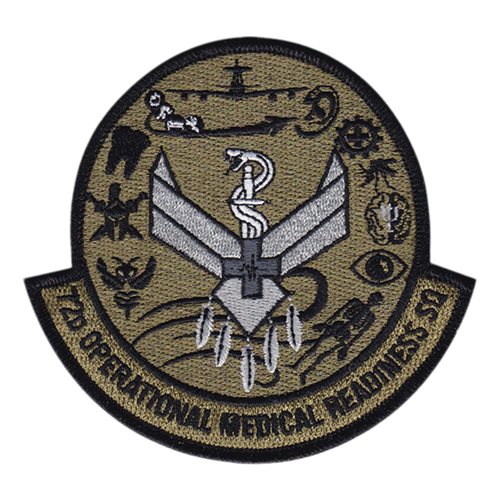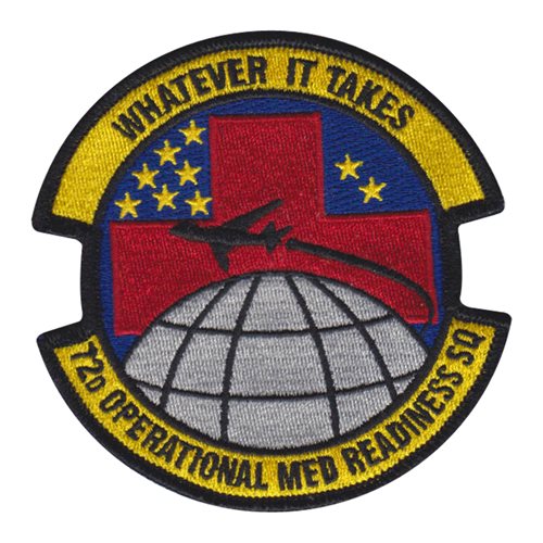 Custom patches for the 72nd Operational Medical Readiness Squadron at Tinker Air Force Base, Oklahoma. Our 72 OMRS patches are 100% embroidered with Velcro backing.