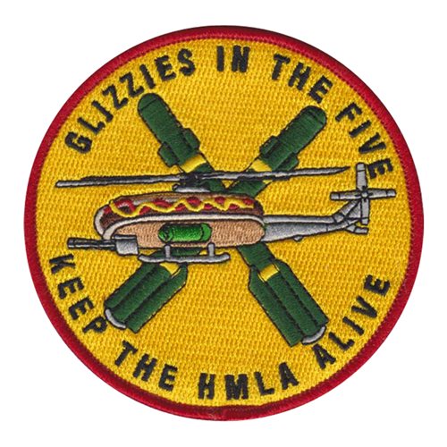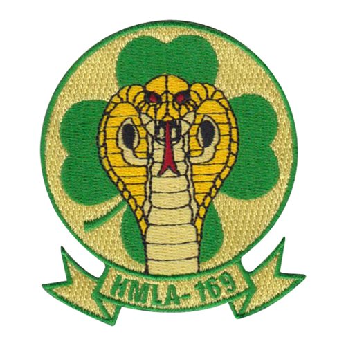 Custom patches for the Marine Light Attack Helicopter Squadron 169 at Marine Corps Base Camp Pendleton, California. Our HMLA-169 patches are 100% embroidered with Velcro backing.