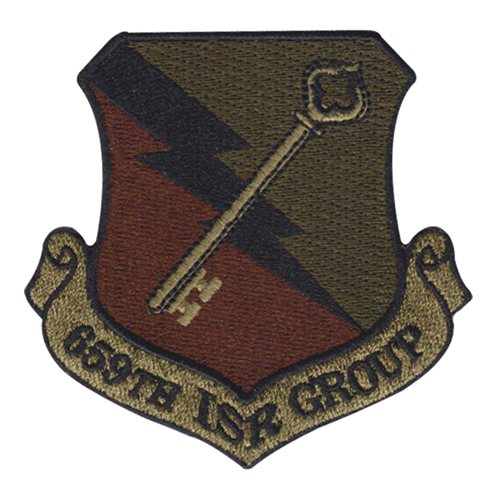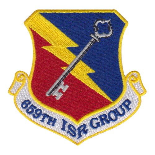 Custom patches for the 659th Intelligence, Surveillance and Reconnaissance Group at Fort Meade, Maryland. Our 659 ISRG patches are 100% embroidered with Velcro backing.
