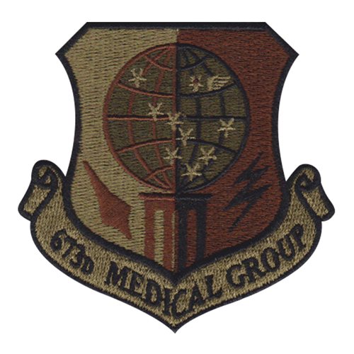 Custom patches for the 673rd Medical Group at Joint Base Elmendorf-Richardson, Anchorage, Alaska. Our 673 MDG patches are 100% embroidered with Velcro backing.