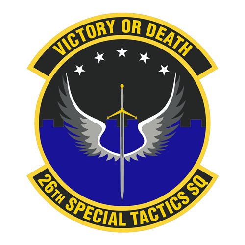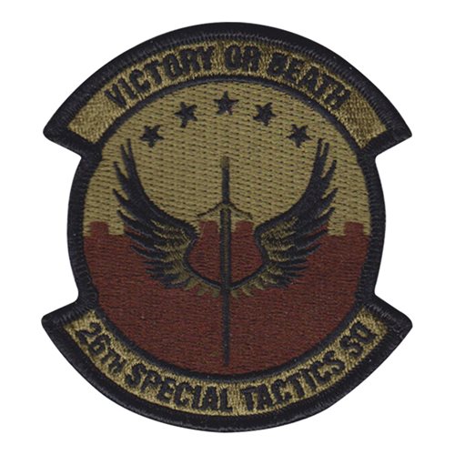 Custom patches for 26th Special Tactics Squadron at Canon Air Force Base, New Mexico. Our 26 STS patches are 100% embroidered with Velcro backing.