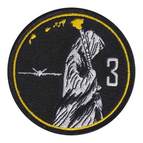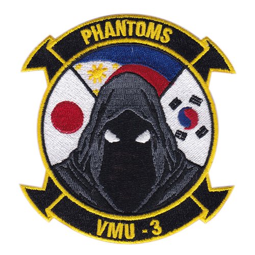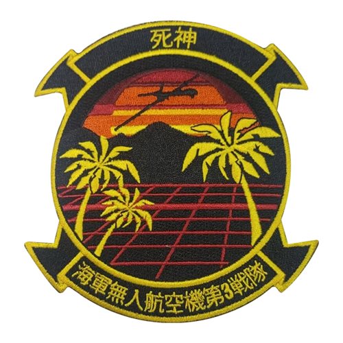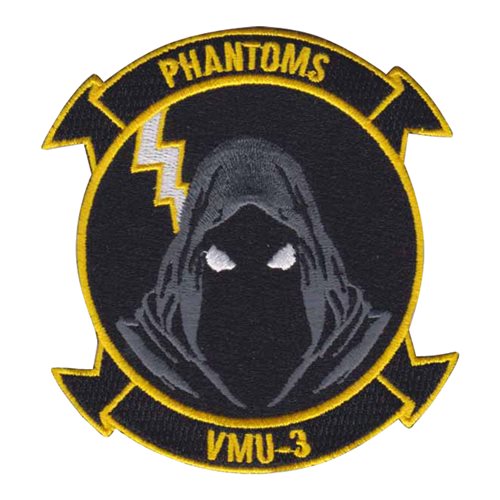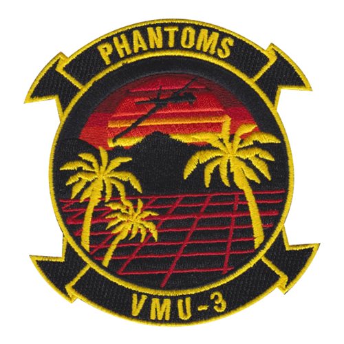 Custom patches for the Marine Unmanned Aerial Vehicle Squadron 3 at the Marine Corps Base Hawaii, Kaneohe Bay. Our VMU-3 patches are 100% embroidered with Velcro backing.