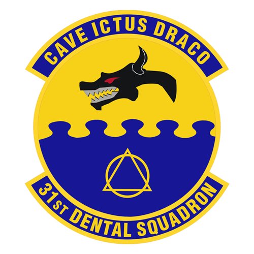 Custom patches for 31st Dental Squadron at Aviano Air Base, Italy. Our 31 DS patches are 100% embroidered with Velcro backing.