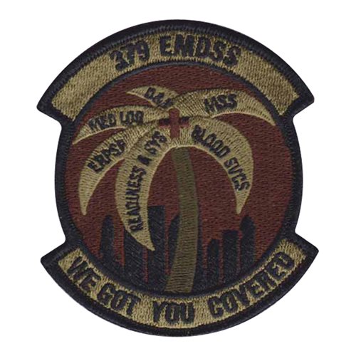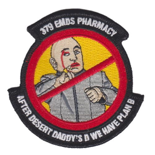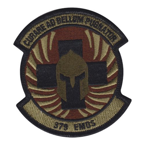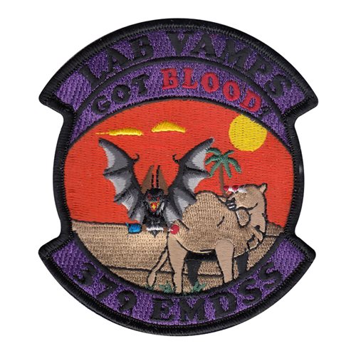 Custom patches for the 379th Expeditionary Medical Support Squadron. Our 379 EMDSS patches are 100% embroidered with Velcro backing.