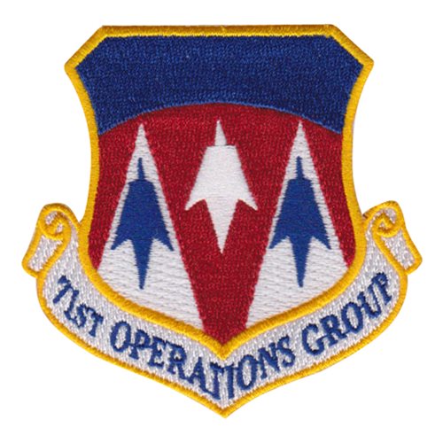 Custom patches for the 71st Operations Group at Vance Air Force Base, Oklahoma. Our 71 OG patches are 100% embroidered with Velcro backing.