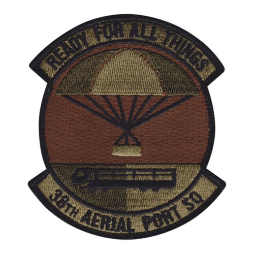 Custom patches for 38th Aerial Port Squadron at Charleston Air Force Base, South Carolina. Our 38 APS patches are 100% embroidered with Velcro backing.